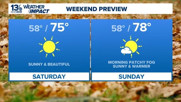 "We're in for a beautiful weekend, crisp and cool nights, mild and comfortable afternoons, said Chief Meteorologist Tim Pandajis of 13News Now.